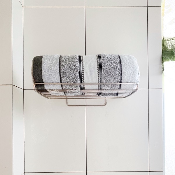 煮婦家的浴室小小的,再放個櫃子略嫌太擁擠,這個毛巾置物架可壁掛在牆上真的好方便,可放換洗衣物或毛巾、也可以放生活日用品,牆上的空間有充份利用到,看起來簡潔,使用上也很順手!