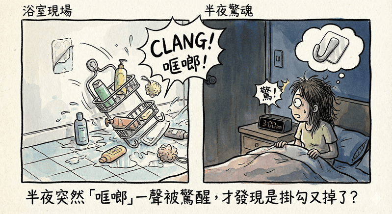 然而,面對家裡真實存在的濕氣、溫差、或非光滑牆面時,最終都可能演變成掉落的意外。