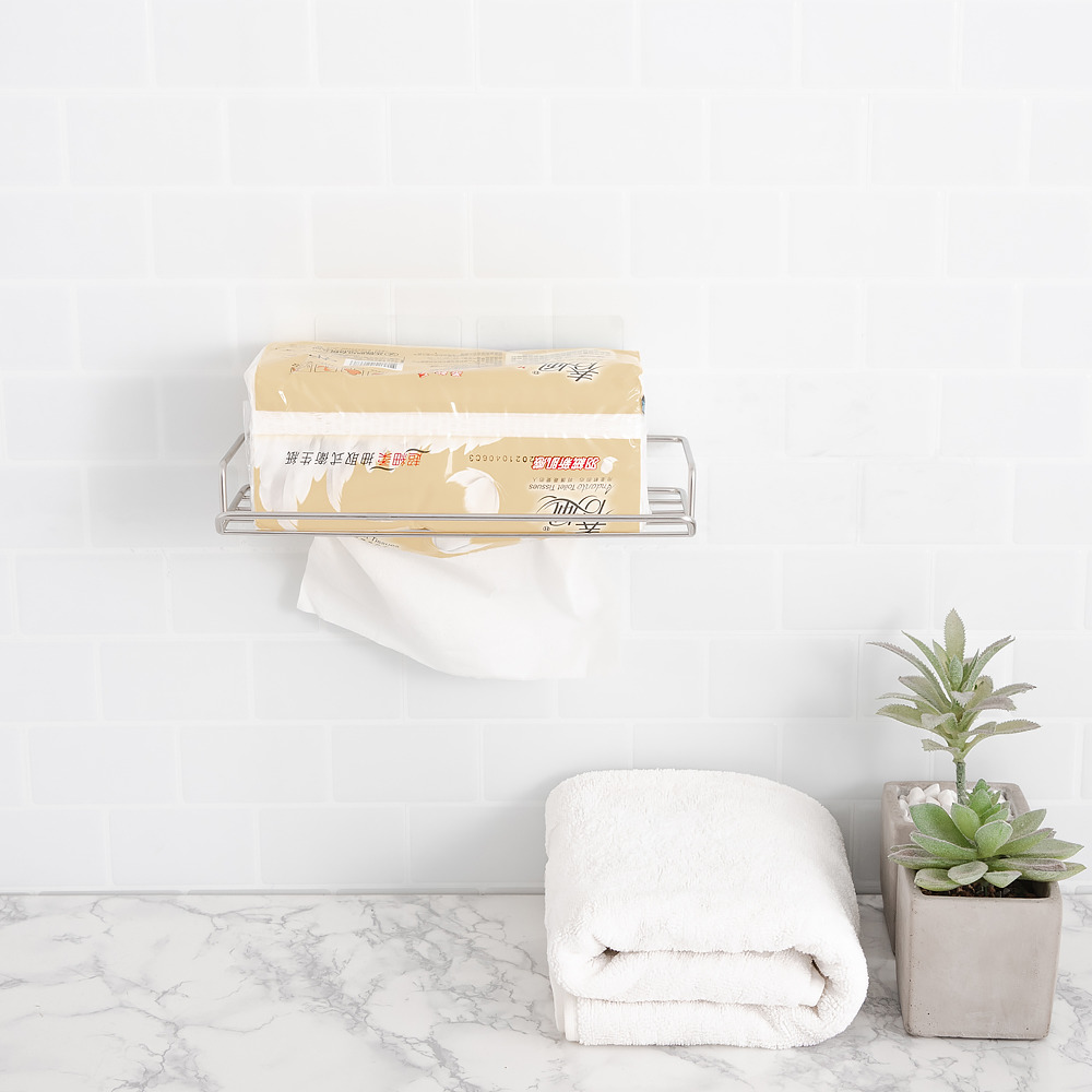 【餐桌旁】因為餐桌靠牆,所以我也沒放過這面空間,使用316不鏽鋼 衛生紙收納置物架,集中衛生紙、濕紙巾,下方空間我放了集中外出口罩的收納籃。這款置物架有四個尺寸,特色是衛生紙可以開口朝下,單手抽取更方便。